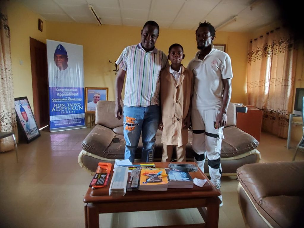 In addition to purchasing the boy’s two school uniforms, the caretaker chairman Adeyekun also purchased mathematical sets, twelve textbooks for higher education, school bags, shoes, and textbooks including New General Mathematics Book I, New Concept English Book I, and Essentials Physics, Chemistry, and Biology.