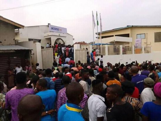Huge crowd besieged banking halls on Monday, as customers moved to link their Bank Verification Numbers and National Identity Numbers to their bank accounts.