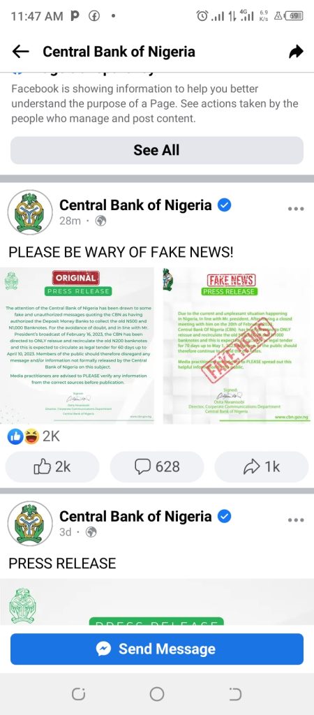 “Members of the public should therefore disregard any message and/or information not formally released by the Central Bank of Nigeria on this subject. Media practitioners are advised to PLEASE verify any information from the correct sources before publication.”
