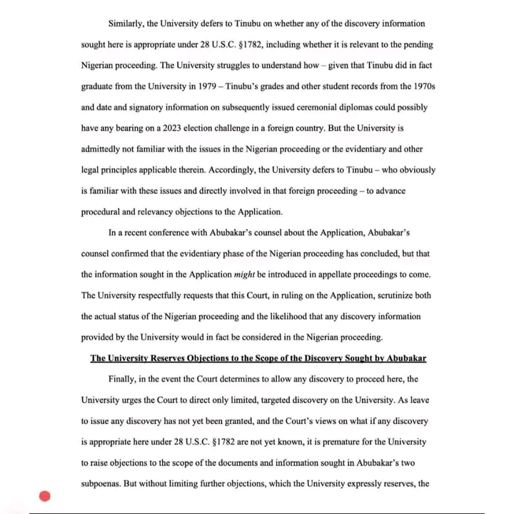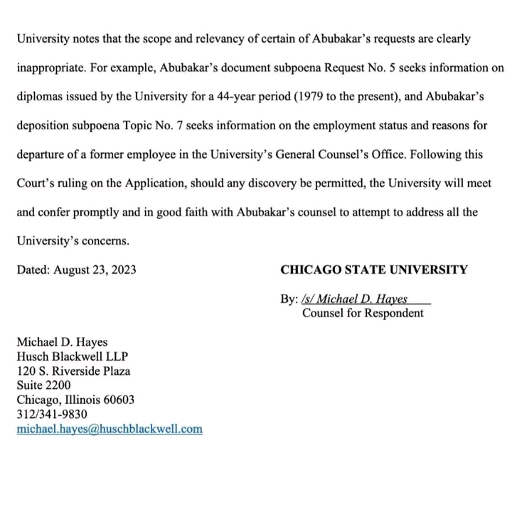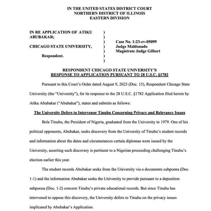 In the document shared by the PDP on Twitter on Thursday, the university maintained that President Tinubu is a Chicago State University graduate and was unaware of the litigations against President Tinubu and its academic credentials.