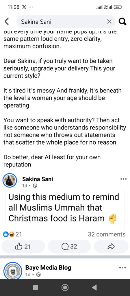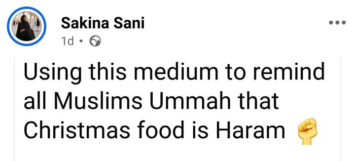A Nigerian lady, Sakina Sani has reminded Muslims that Christmas food is Haram.