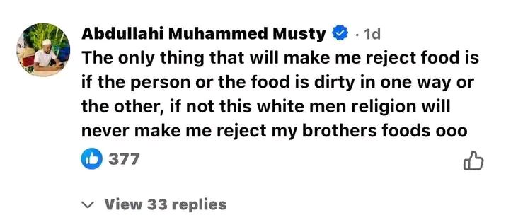 “Using this medium to remind all Muslims Ummah that Christmas food is Haram,” she wrote in a Facebook post on Monday.
