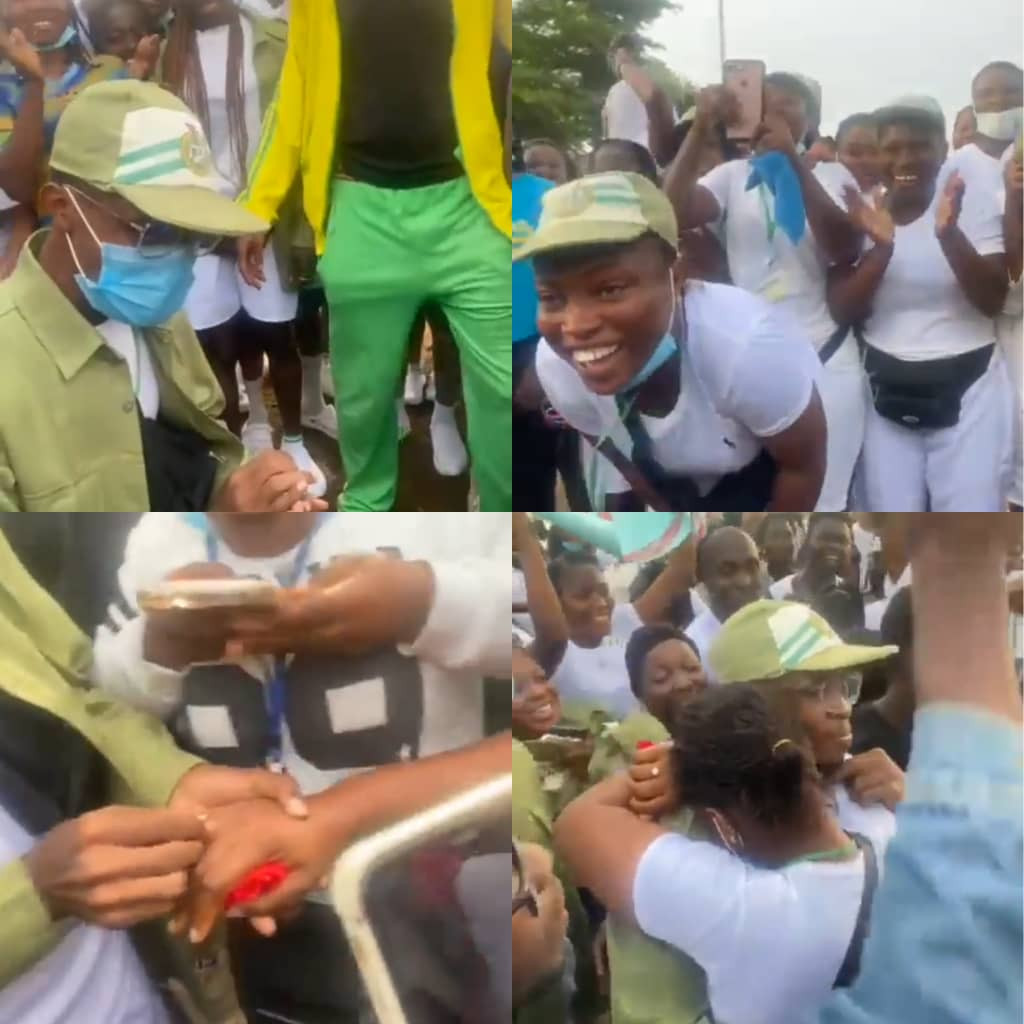 A Serving corps member has warmed the hearts of many after going on his knees to propose to his fellow corper at the Ogun state campground.