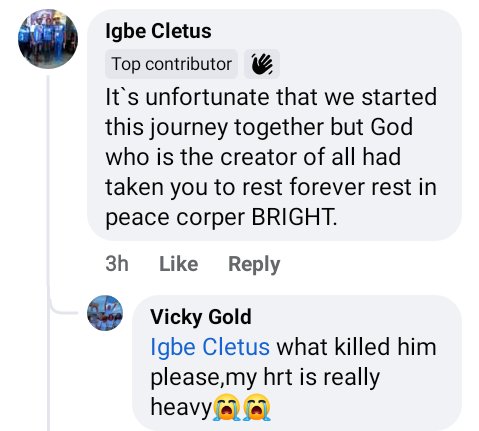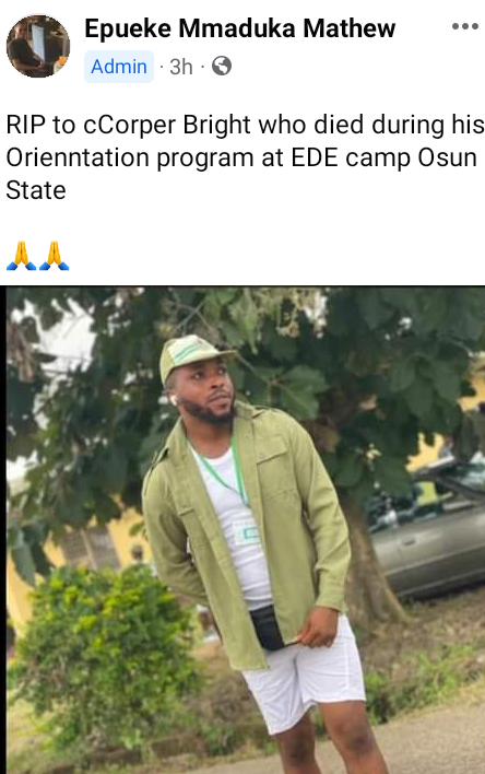 A corps member identified as Bright has reportedly died at the Osun State orientation camp of the National Youth Service Corps (NYSC).