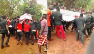 A video shared online shows the moment a coffin containing a corpse apparently refused to be buried as able-bodied men were seen struggling to carry it to where it should be buried.