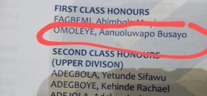 It is also worthy of note that she was the ONLY STUDENT WITH DISABILITY in her whole class, both at the departmental and faculty level, yet, she went against all odds to emerge the best.