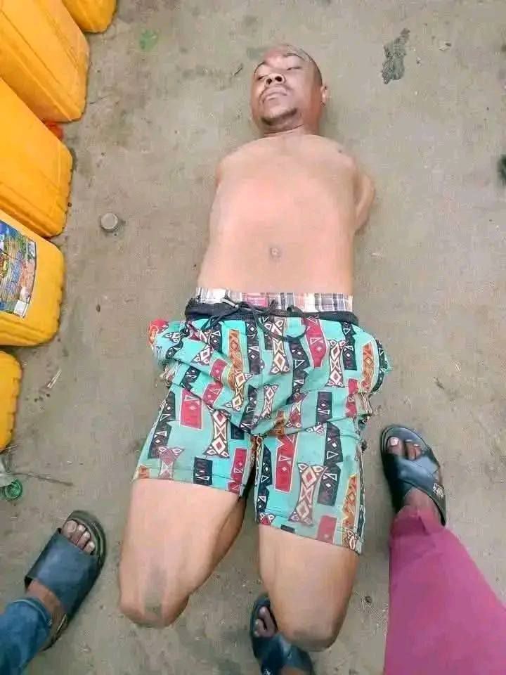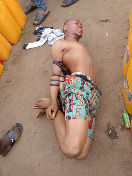 Eyewitnesses revealed that the suspect, said to have allegedly been targeting traders for some time, was caught while trying to sneak away with a container of palm oil.