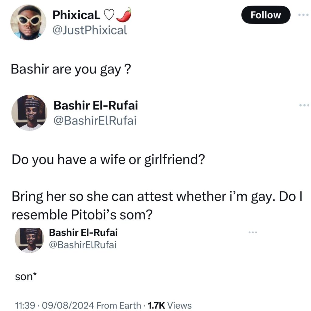 Bashir El-Rufai, the son of former Kaduna state governor, Nasir El-Rufai, clapped back at an X user who had asked if he is g@y.