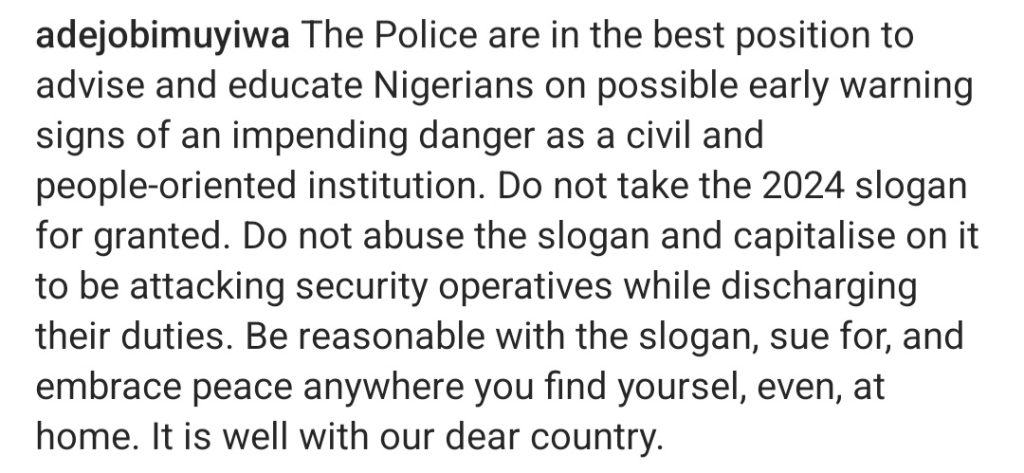 Recall that Adejobi had warned Nigerians against using the 2024 slogan, describing it as a very dangerous slogan that can trigger crisis.