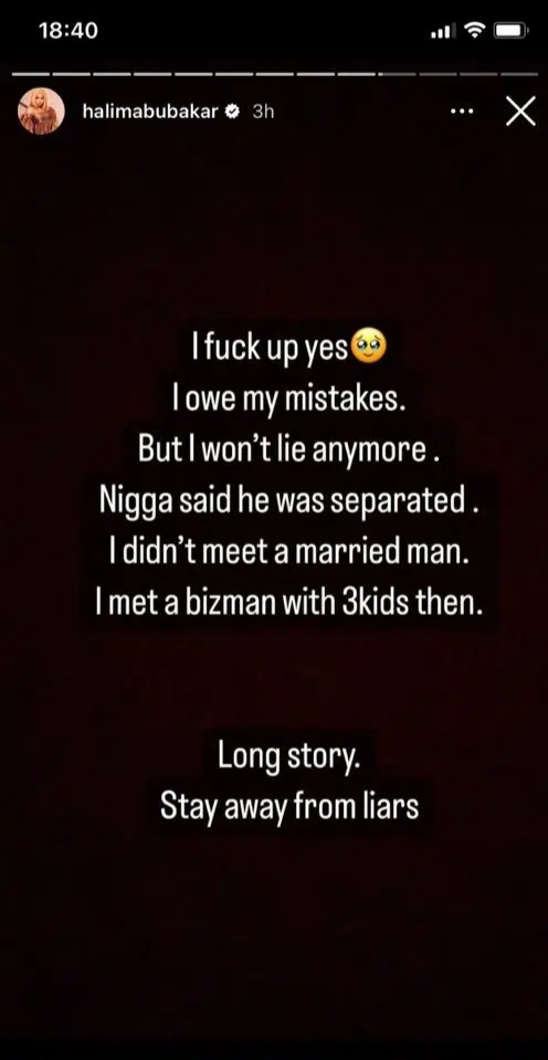 In a new revelation via the Instagram story of Halima Abubakar, she stated that she was oblivious to the fact the Apostle was a married man.