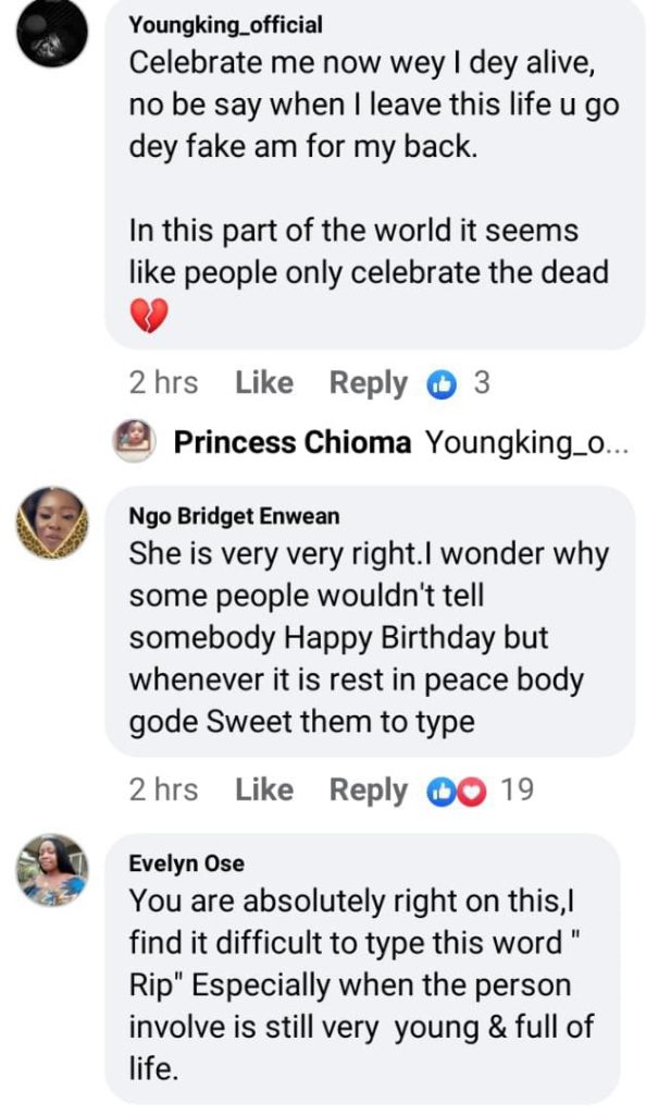 The actress said in Pidgin, “When you con drop dead, pictures go con dey fly around. See, if you no post my picture now, when I dey alive, dey hustle, struggle, you see me pass, you show me hate, and you never bother to help me. If you show me hate now, you no dey help me in anyway, no post my picture…I go wake up pursue you.”