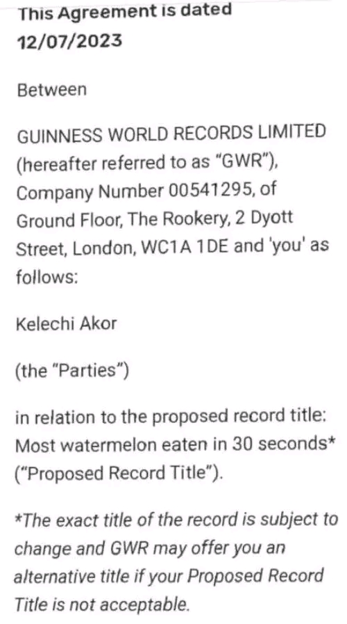 A 17-year-old Nigerian Boy, Akor Kelechi Kingsley, is set to attempt the Guinness World Record for the most watermelon eaten in 30 seconds.