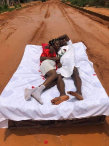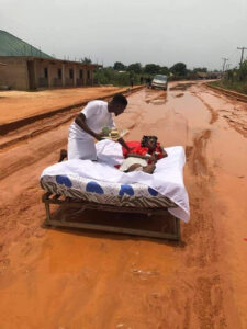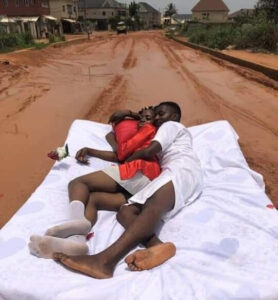The pair got a bed and placed it in the middle of the terrible Ohi-Orogwe road in Imo state.