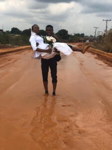 A couple chose to call attention to the poor state of a road in their state by staging their honeymoon there.