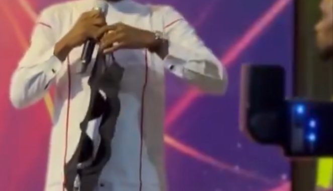 In the viral video, the pastor who was holding up some bra called the usher and asked him hand each to ladies who didn’t wear one to church.