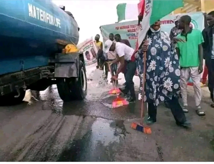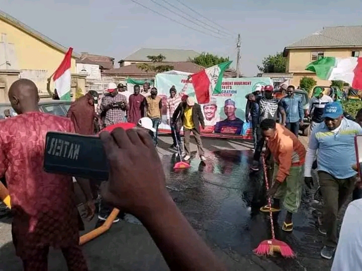 Many Jos residents, majorly youths, who are supporters of the opposition PDP in their numbers, on Wednesday, trooped to the Rwang Pam stadium, venue of the APC campaign flag-off to engage in cleansing exercise.