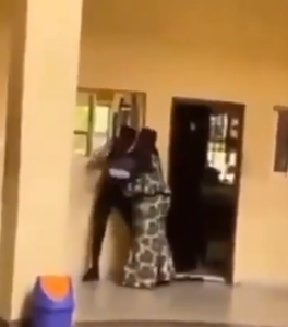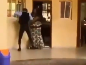 Afe babalola University male student beats up female lecturer of same institution, seen holding him in this video.