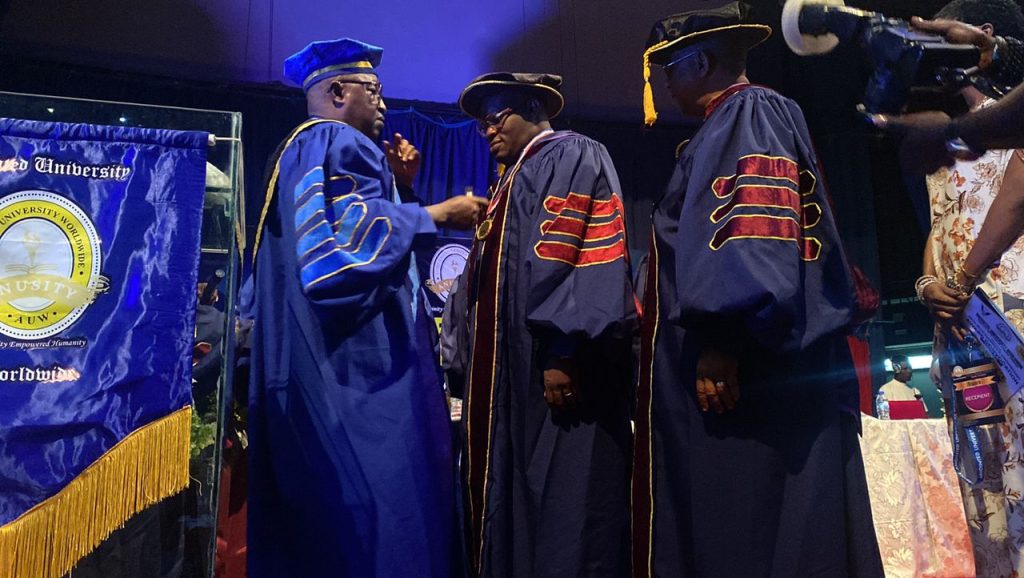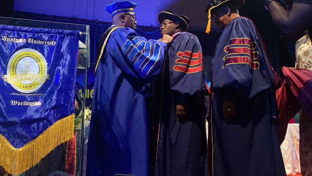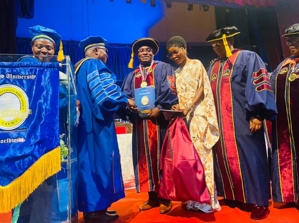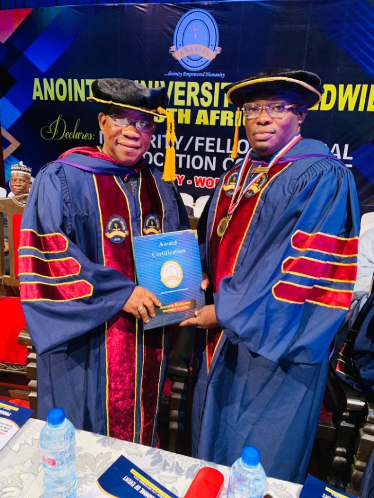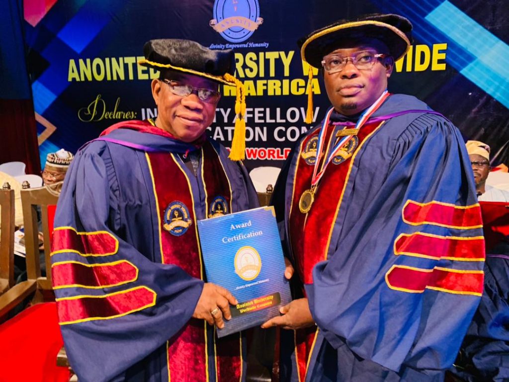 In recognition of his overall accomplishments and contribution to his local community development and the society in general, Anointed University Worldwide, Nigeria Campus, has conferred its prestigious Honorary Doctorate Degree award in the field of Christian Counselling on Dr. Tosin Odeyemi.