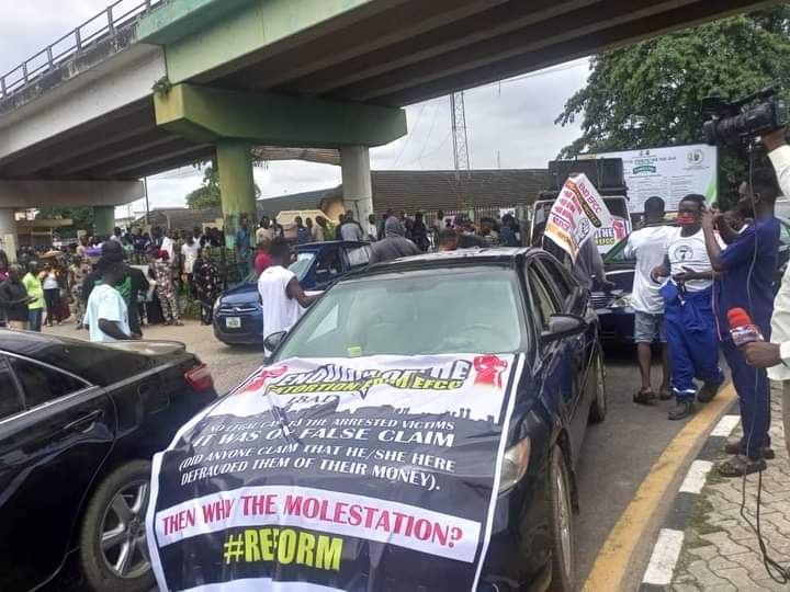 The protesters were seen holding banners, some of which read, “Enough of the extortion from EFCC,” and “End EFCC,” among others.