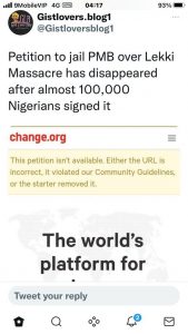 An online petition initiated change.org by Reno Omokri, a former special assistant to Nigeria’s former President, Goodluck Jonathan, has been removed from the website.