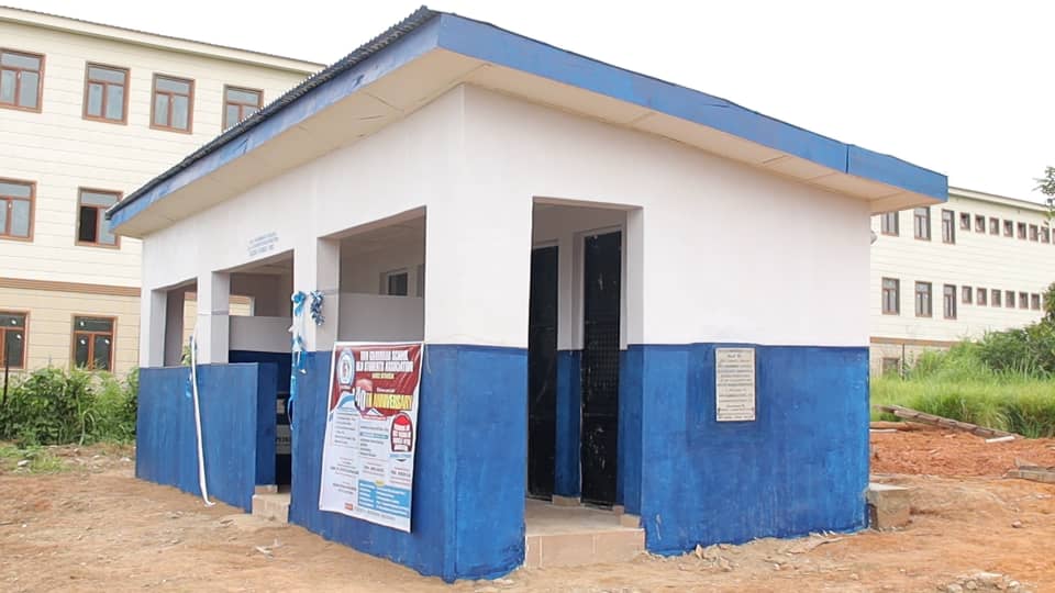 The commissioning of the anniversary gift which was a block of 6 toilets in the school compound was done by the chairman of the occasion, Engr. Lanre Adeleke, CEO, Peculiar Constructions Nig LTD., flanked by the representative of the monarch, the 1982 set, members of staff of the school, and the students.
