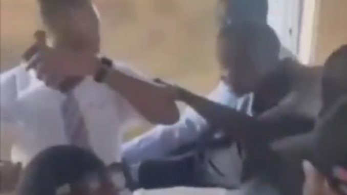 Other court attendees joined in, mobbing the man as he pleaded to make a phone call, but they refused, insisting, “We are taking you to the station.”