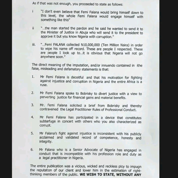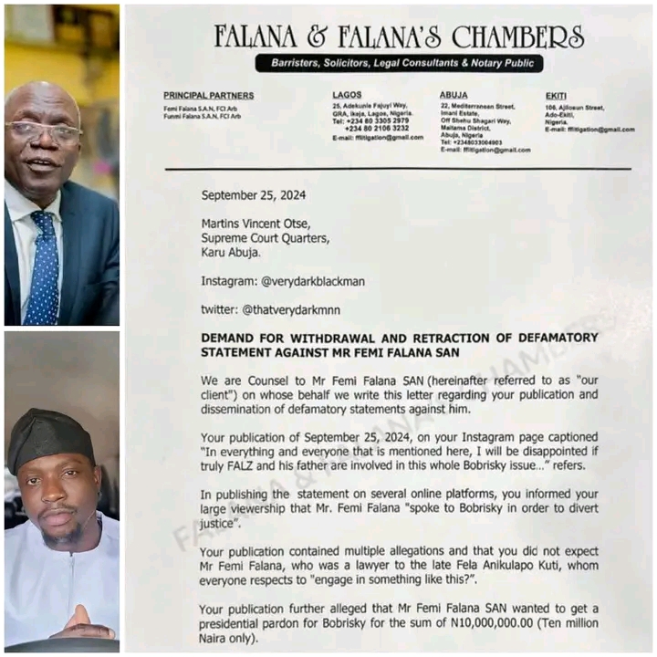 In a letter dated September 25 and released by his legal representative, Taiwo Olawanle, Falana described the allegation as a vicious, wicked, and reckless ploy to impugn his reputation. The senior lawyer said he has never spoken to Bobrisky on his alleged pardon or any matter whatsoever. In the letter, the legal expert demanded an immediate retraction of the said publication as well as an apology from VeryDarkMan to be published in all the platforms within 24 hours.