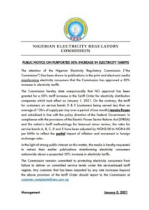 Meanwhile, in a new development on Tuesday, the NERC denied the stories that they have increased electricity tariffs by 50%.