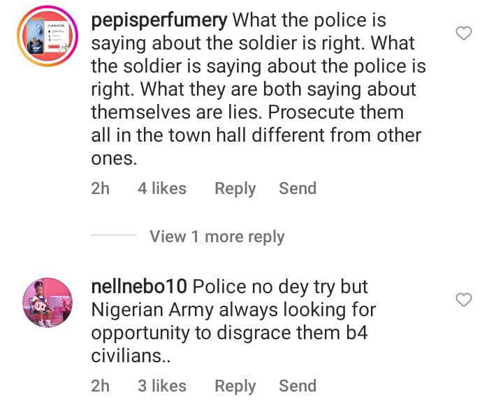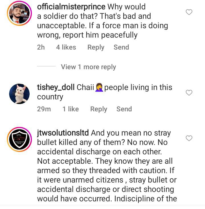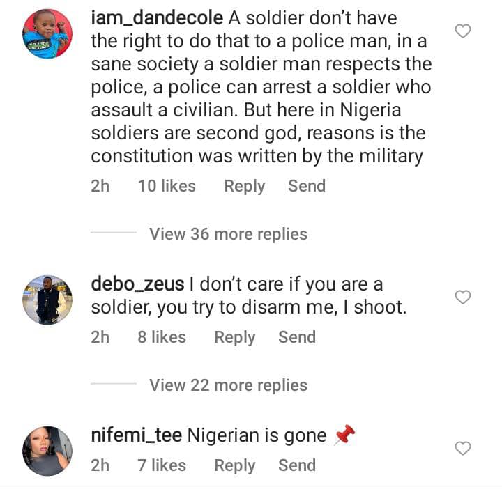 A video shared online shows a soldier and a police officer wrestling while their colleagues exchanged words.