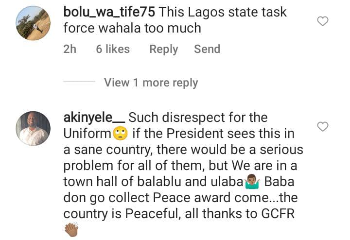 “Na God go punish you,” the uniformed men say as they disperse.