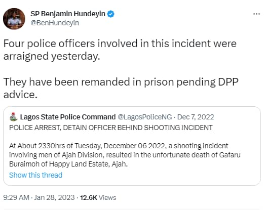 In an update given this morning, the spokesperson of the state police command, SP Benjamin Hundeyin, said four officers were arraigned in court on Friday, January 27 and have been remanded in prison custody.