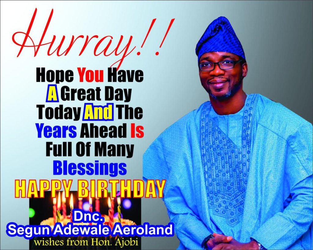 As Lagos West Senatorial candidate and CEO Aeroland, Otunba Segun Adewale, turns new age today, Hon Ijaola Faruq Ajobi has sent words of felicitations to him.