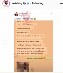 According to the chat shared on Whatsapp, the job seeker was telling his friend on WhatsApp how an employer saw his resume and employed him as the company’s designer. The employer also said that the company was going to pay