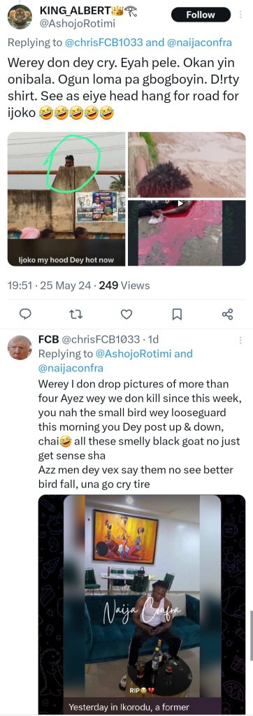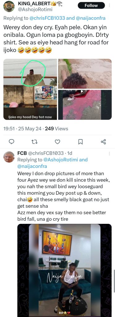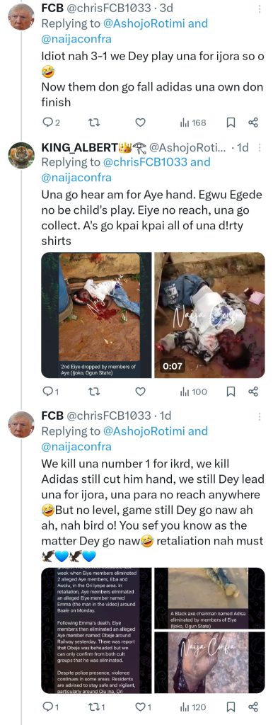 Meanwhile, some X users claiming to be cult members have gone under the post of the killing to boast about killing more members from the rival gang.
