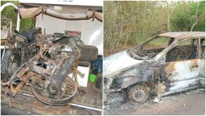 DAILY POST learnt that the kidnappers set the two vehicles on fire as they also burnt nine of the 10 motorbikes at Odetedo-Idi-Iroko, Imeko.