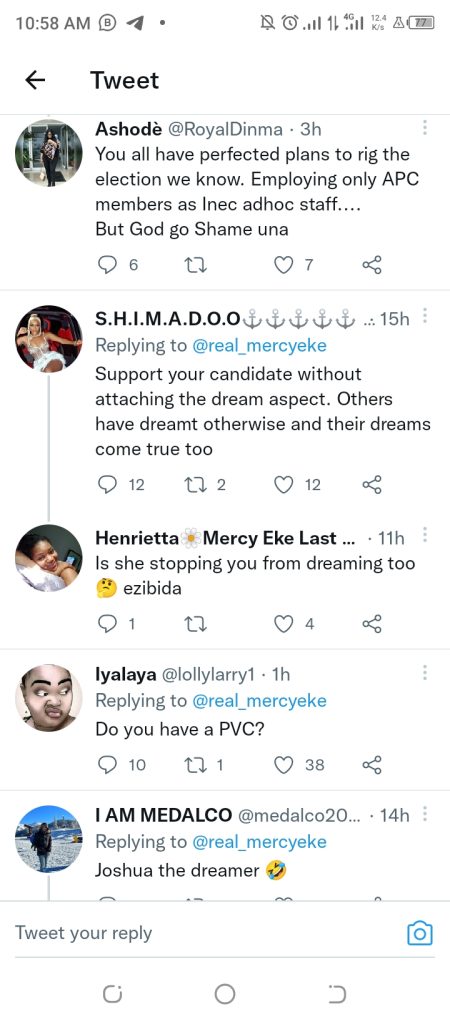 Season four winner of the Big Brother Naija show, Mercy Eke, has said that she dreamt that the presidential candidate of the Labour Party, Peter Obi, won the 2023 election.