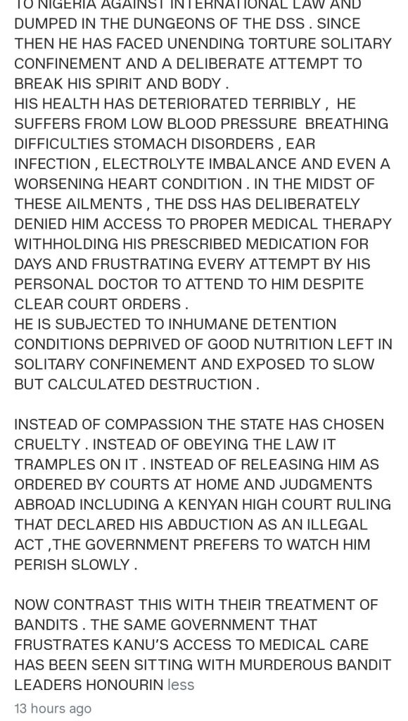 The APC Chieftain made his feelings known on Facebook after actress Rita Edochie went on Instagram to advocate for the detained leader of the Indigenous People of Biafra (IPOB).