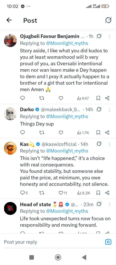 Kas wrote: “This isn’t ‘life happened,’ it’s a choice with real consequences. You found stability, but someone else paid the price, at minimum, you owe honesty and accountability, not silence.”