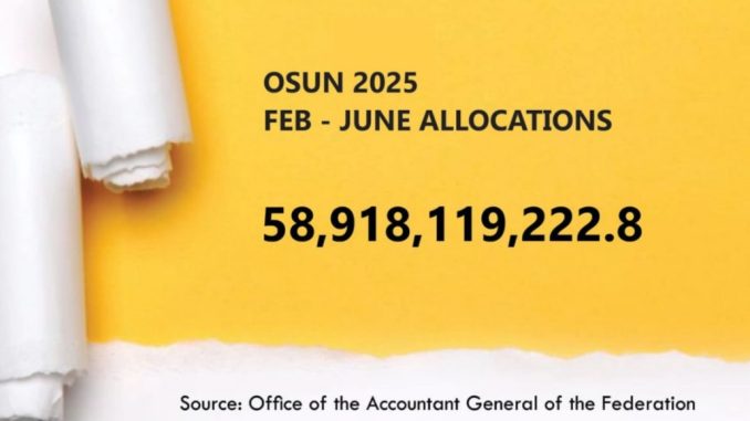Parts of the statement reads, “A total sum of N58,918,119,222.8 (Fifty-Eight Billion, Nine Hundred and Eighteen Million, One Hundred and Nineteen Thousand and Two Hundred and Twenty Two Naira and Eight Kobo) was released for local government areas in Osun State between February and June 2025.