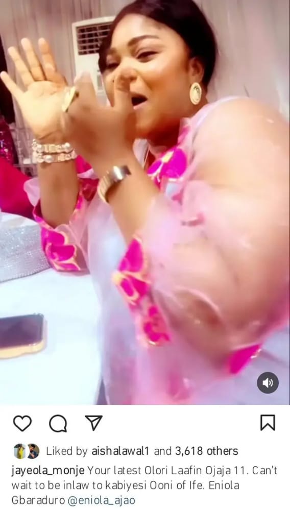 Nollywood actress, Jaiye Kuti has stirred marriage rumours between Eniola Badmus and the Ooni of Ife, Oba Enitan Adeyeye Ogunwusi.