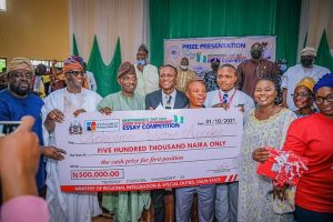 This is as a student of Bowen University, Iwo, Master Adeyemo Victor emerged the winner of the tertiary institution category in the essay competition while Miss Adegboyega Abisola Faith of Fakunle Comprehensive High School, Osogbo won the secondary school category.