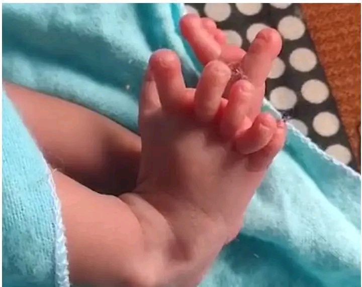 The baby girl has seven fingers on each hand and six toes on each foot.