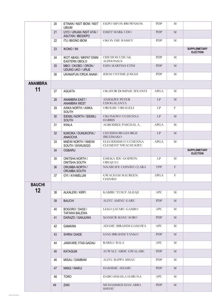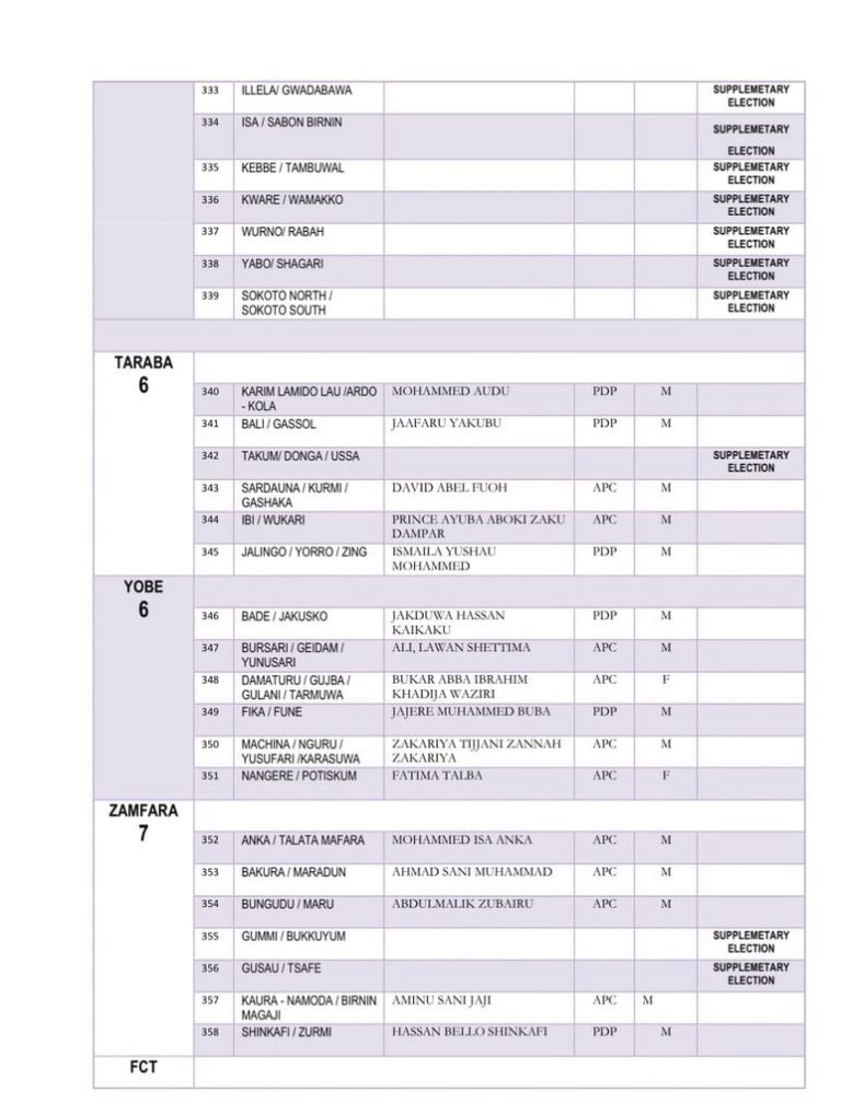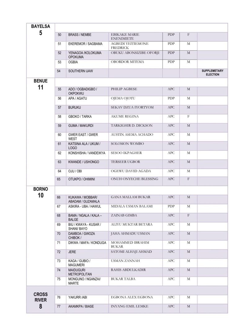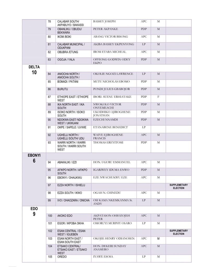 The Independent National Electoral Commission has released the full list of members-elect of the 10th House of Representatives.
