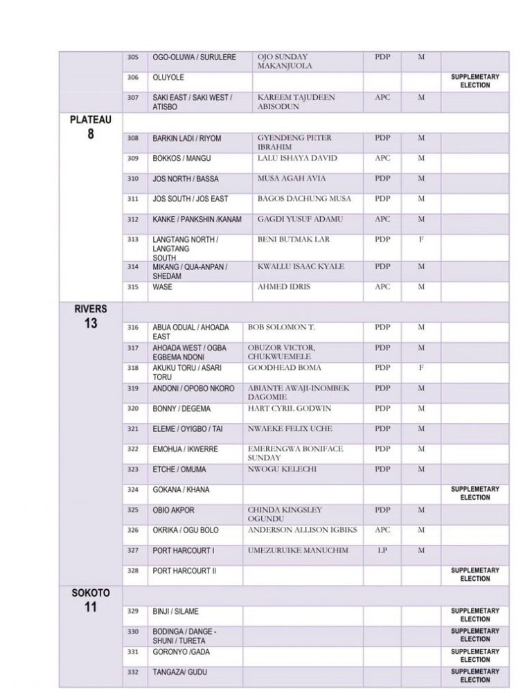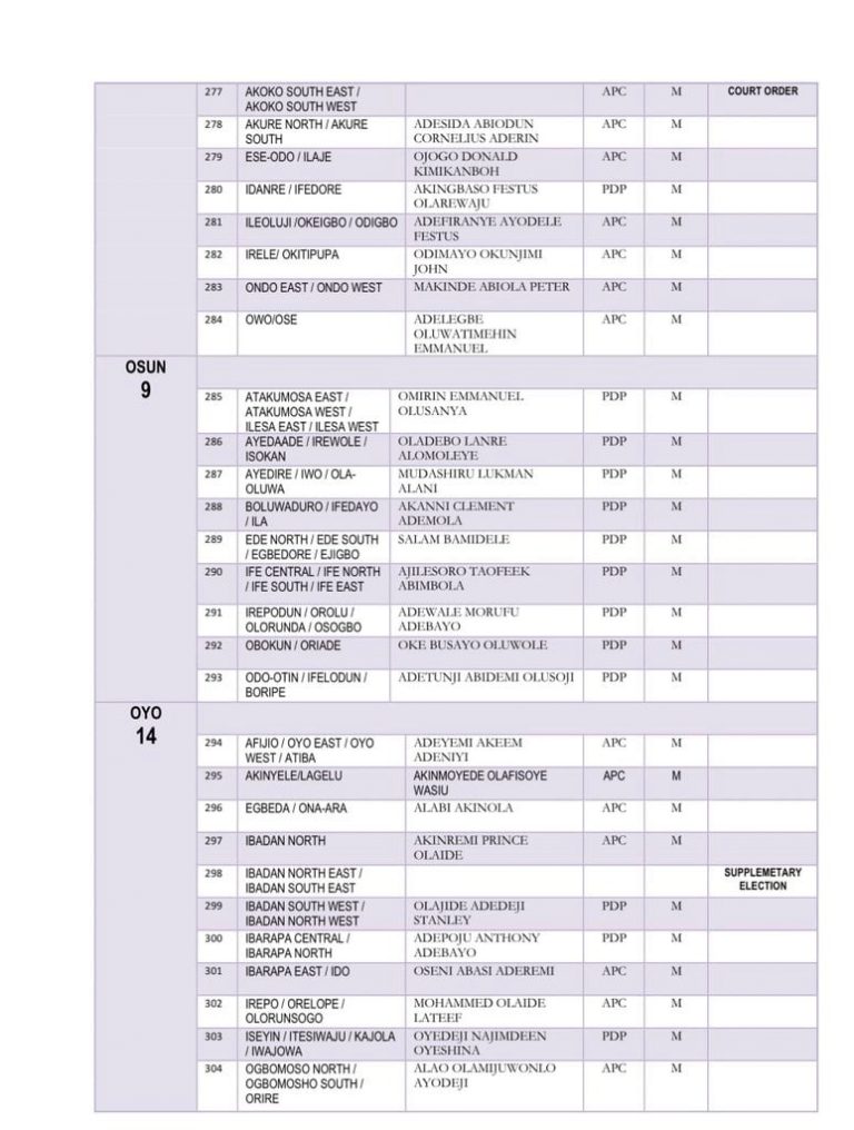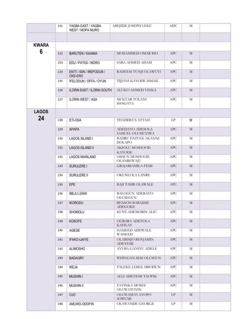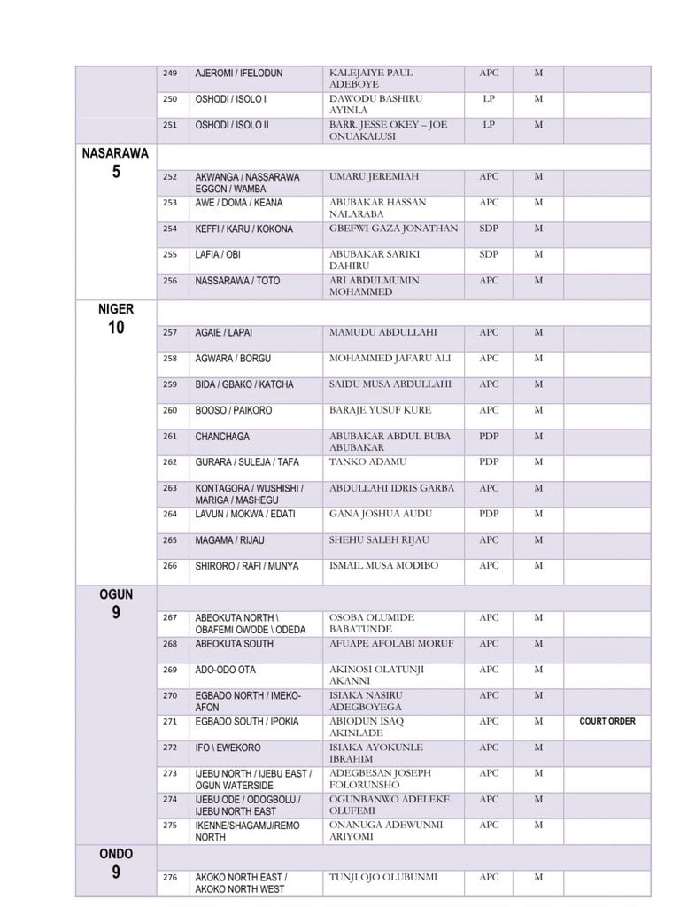 The Independent National Electoral Commission has released the full list of members-elect of the 10th House of Representatives.