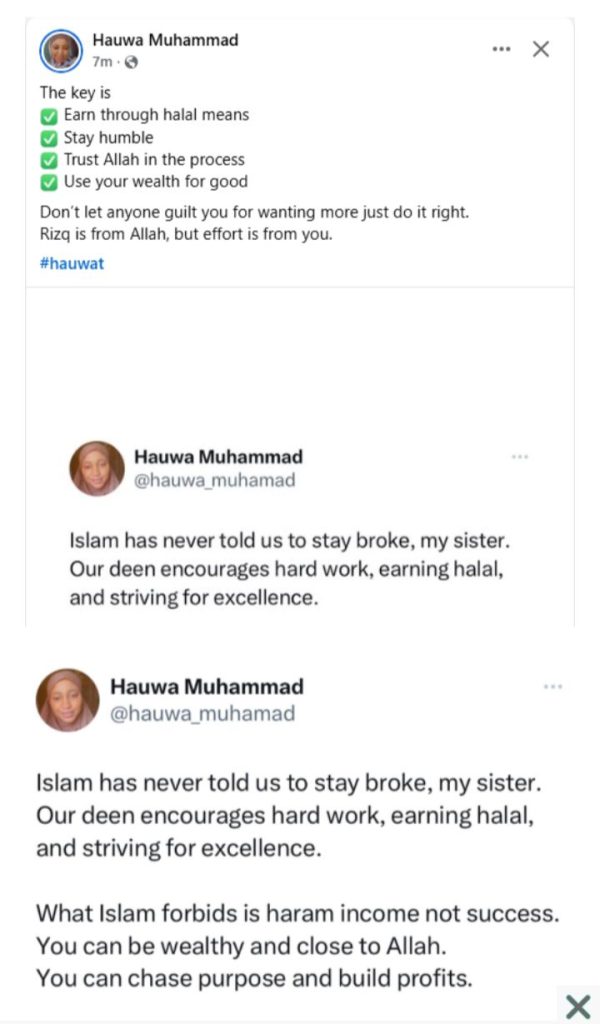 “The key is Earn through halal means. Stay humble. Trust Allah in the process. Use your wealth for good. Don’t let anyone guilt you for wanting more just do it right. Rizq is from Allah, but effort is from you,” she added.