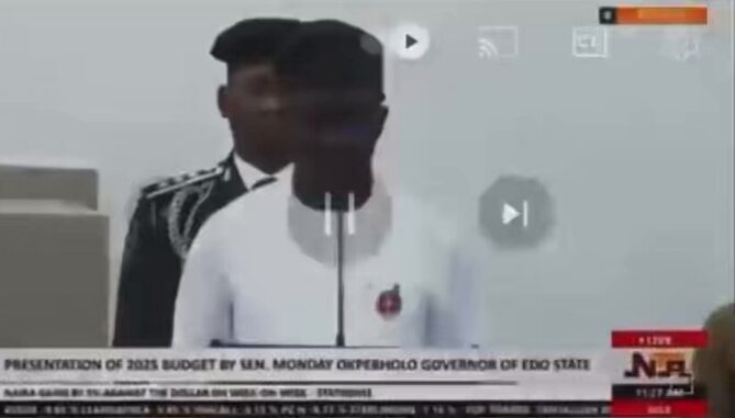 Monday Okpebholo, governor of Edo, struggled while reeling out figures from the 2025 budget proposal.