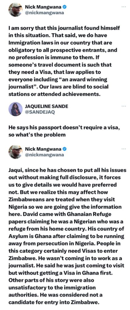 Journalist David Hundeyin and Zimbabwe Permanent Secretary of Information, Nick Mangwana, clash on Twitter over his detention at the Harare Airport