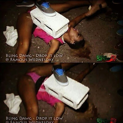 According to an Instagram user who shared with photos below, alot of people gathered around this lady, I don’t even know what is actually happening here, Some say it is a form of entertainment in their area. Probably the lady will get paid for doing this. Checkout the photos below…