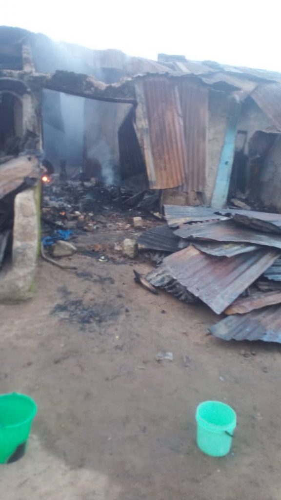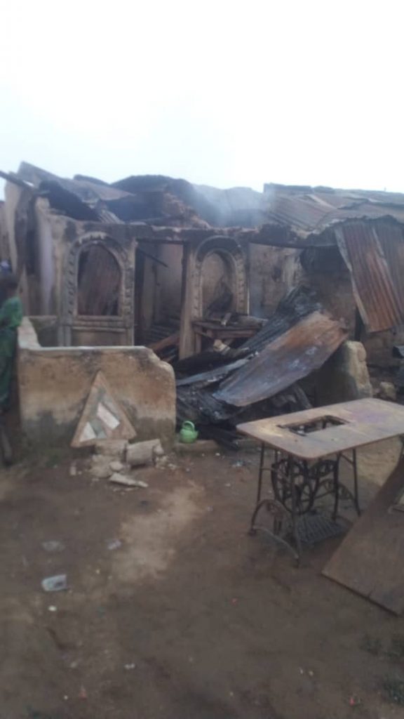 “The tailor has an Electronic sewing machine, a manual machine, customers clothes, an iron, furniture etc. The aluminum still has small hope as some of his works are outside the building, the ones in the building got burnt too.”