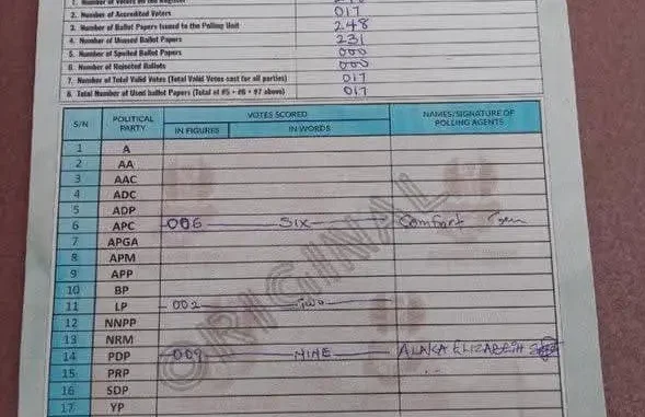 A total of 248 voters were registered at the polling unit, but only 17 cast their votes.